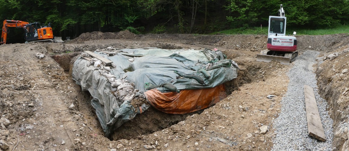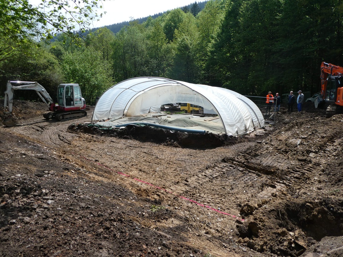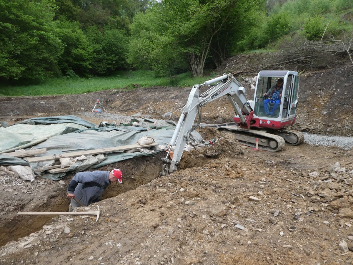 Jürgen Sänger von der Waldgenossenschaft Siegen-Niederschelden initiierte daher 2012, dass die Fundstätte mit dieser außergewöhnlichen Befunderhaltung nicht weiter ausgegraben werden sollte. Wir Archäologen planten nämlich eigentlich, alle Strukturen vollständig auszugraben, um ein Maximum an Informationen zu erhalten – dies hätte jedoch die völlige Zerstörung der Befunde bedeutet. Jürgen Sängers Initiative folgten rasch der Heimatverein Niederschelden und der Heimatverein Niederschelderhütte und wir erkannten, dass dieses Vorhaben unbedingt unterstützenswert ist. Die Ausgrabungen wurden folglich aufgrund des hohen öffentlichen Interesses an einem bestimmten Punkt abgebrochen und die gut erhaltenen Befunde aufwändig gesichert, bedeckt und zum Schutz vor der Witterung mit Erde geschützt.